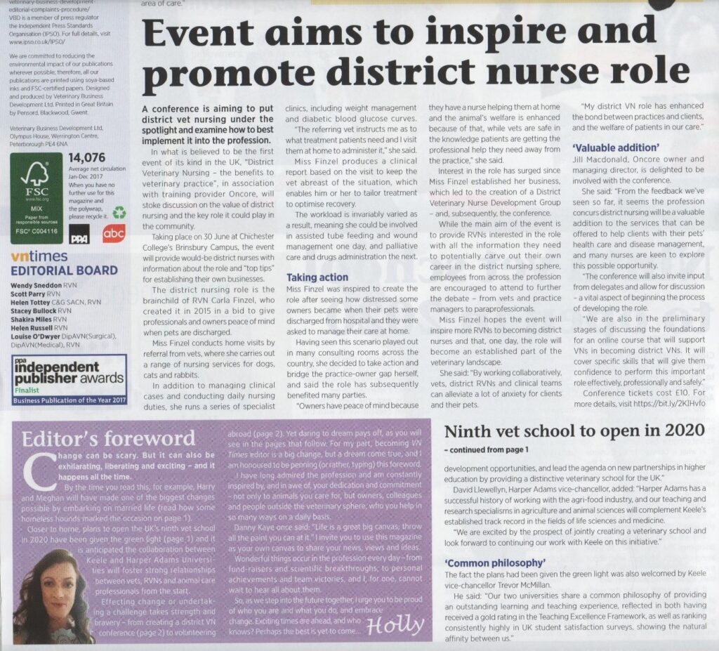 Inaugural Conference on the District Veterinary Nursing role – The Benefits to Veterinary Practice