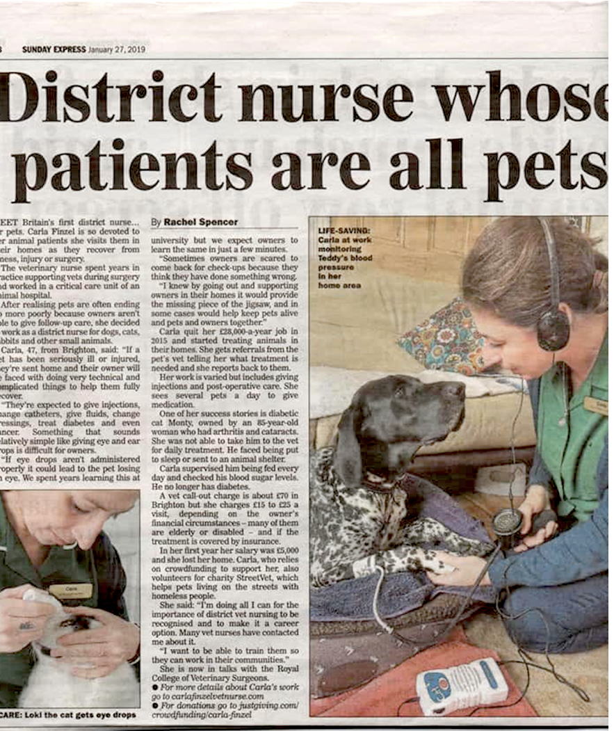 27 Jan Sunday Express newspaper District Nurse whose patients are all Pets